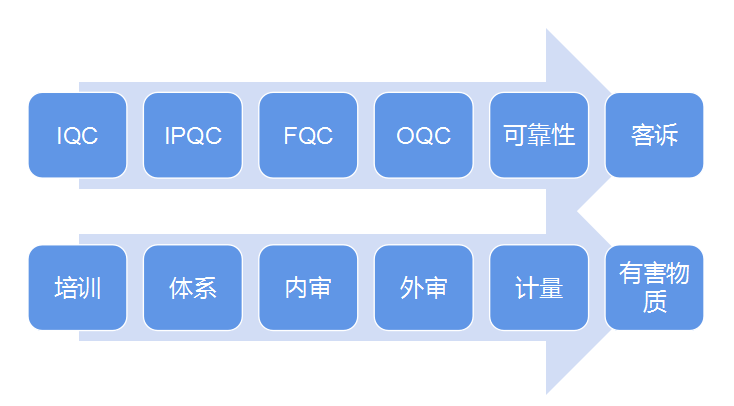 質(zhì)量部根據(jù)現(xiàn)階段公司發(fā)展的目標(biāo),設(shè)定了相關(guān)工作職能,如圖2。